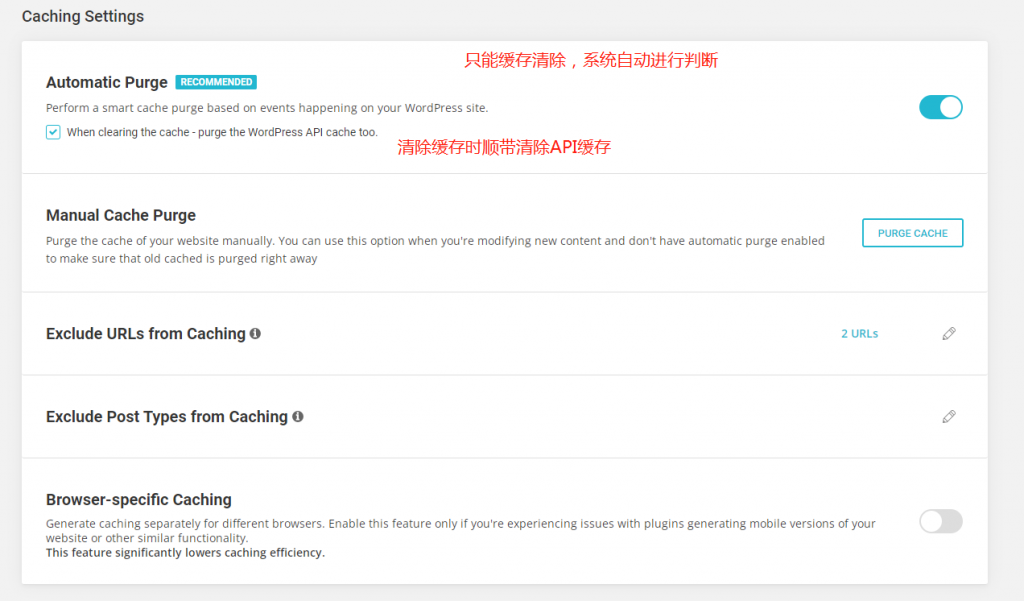 要排除的缓存的 URL,可以填写 wp-admin/* 和 wp-includes/* ,防止 wp-admin 和 wp-includes 下的动态文件被缓存。